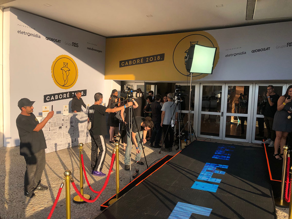 Há dois anos seguidos participamos da criação e implementação do red carpet do Prêmio Caboré, uma parceria do festival com o veículo Meio & Mensagem. Um cenário de gala foi criado para receber os convidados, incluindo uma área de entrevistas e um pack de fotógrafos, que agitou a noite.