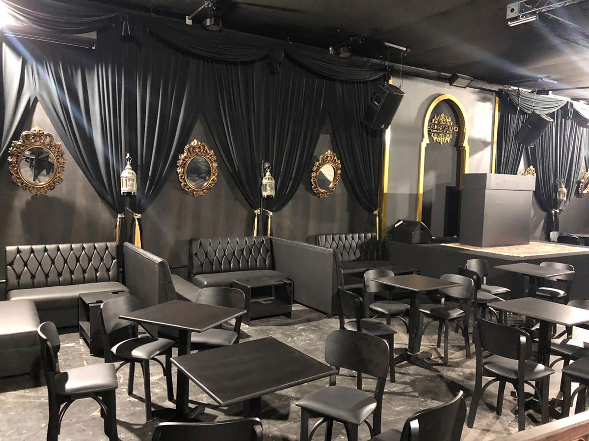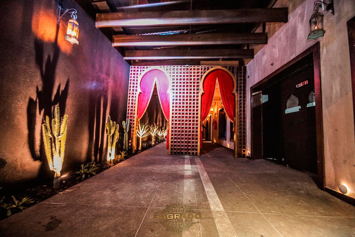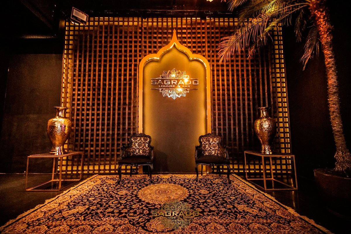 Neste desafio, fomos convidados pelo bar Sagrado Lounge, em São Paulo, para desenvolver a temática cênica da casa, que tem como atração o consumo do Narguilé. Nossos aderecistas e cenógrafos se debruçaram numa pesquisa de peças e mobiliário decorativo com inspiração marroquina, tendo como desafio manter o link com a programação jovem e eclética da casa. Um job especial por ser nosso primeiro projeto cênico de espaço fixo, que naturalmente exigiu uma diferente demanda de materiais e logística.